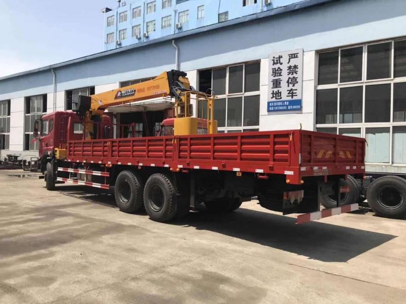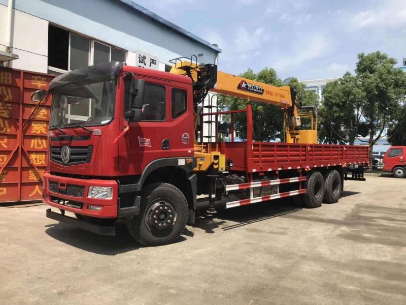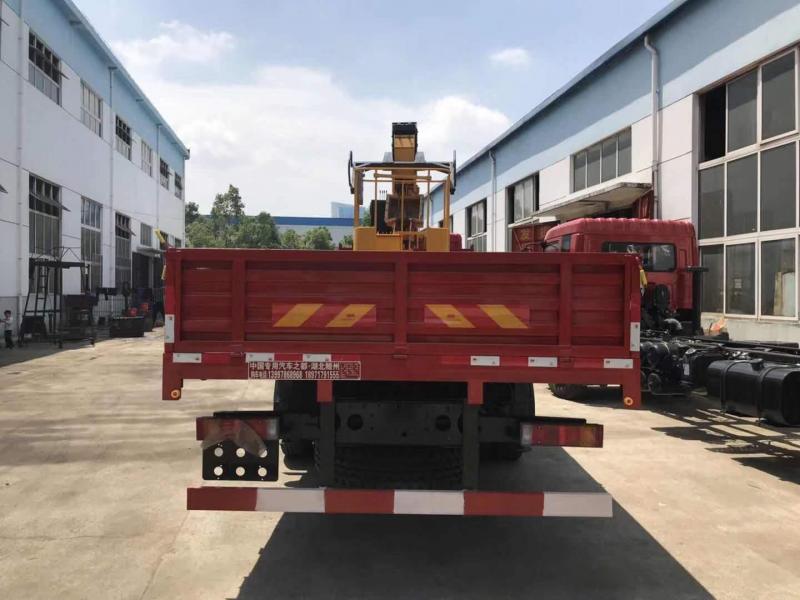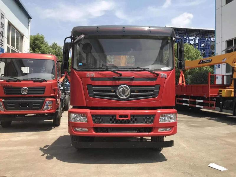 东风T5后八轮随车吊上装说明:加装程力12吨4节直臂吊机、举升高度17米、工作半径15.25米,上操作、带原厂双腔液压后支腿。
