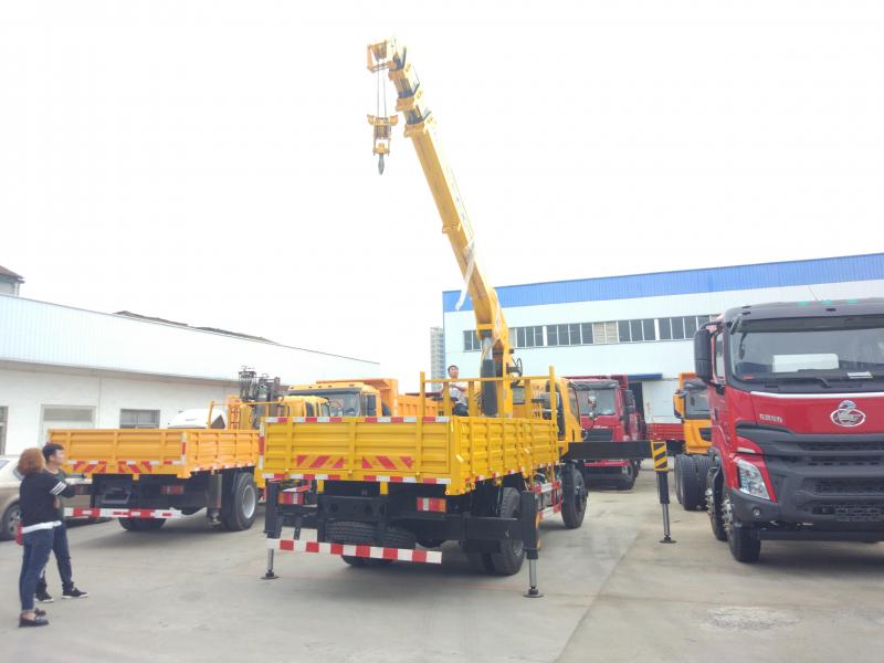 十通三环随车吊上装配置:选装长兴8吨4节直臂式吊机,举升高度15.5米、工作半径13.5米、加装单腔液压后支腿、散热器。货箱边2底4、龙门架两边立柱140mm,中间100mm,前后加固方筒。