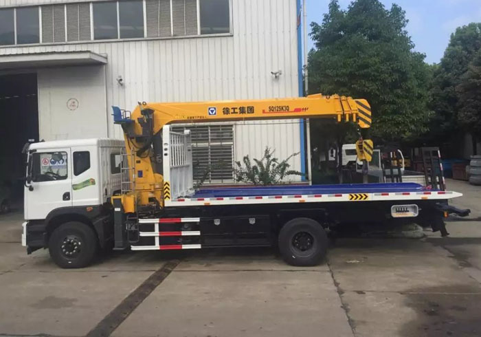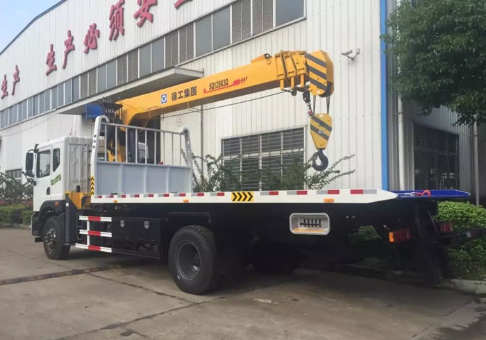 配5-8吨任意型号吊机,6吨液压绞盘一个,25米钢丝绳,板长6.2米宽2.5米,有花纹板及压制板可选,,双侧联动操作装置,配二节式后托臂,托臂大托举5吨,配辅助小车一套,黄色电子警灯一个,四根捆绑带。提供底盘合格证、整车合格证、全国统一机动车辆发票、随车工具、车辆质保手册、全国服务站名录等;