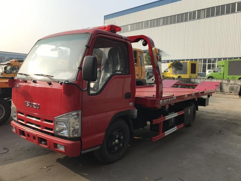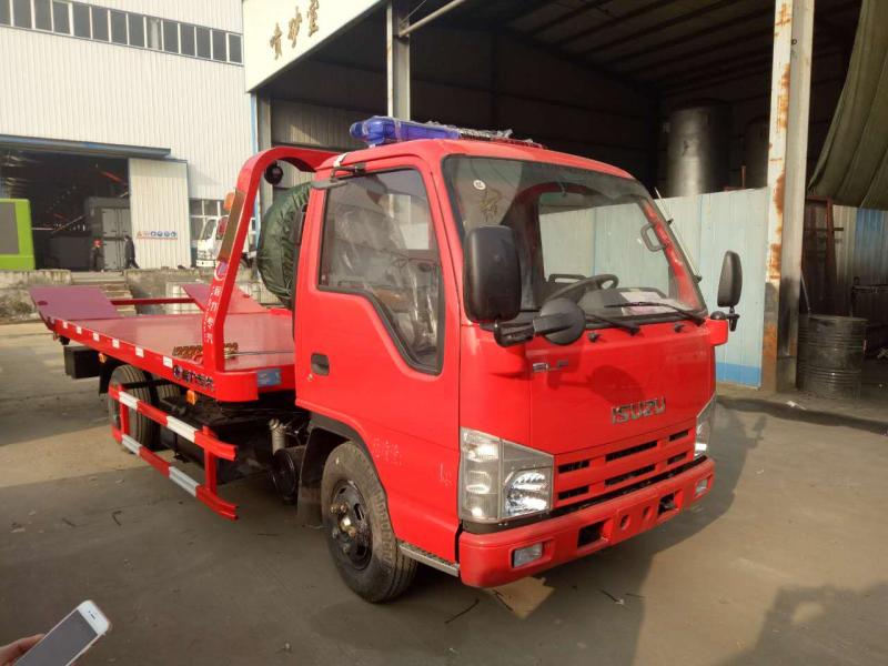清障车厂家:红色五十铃一拖二蓝牌清障车