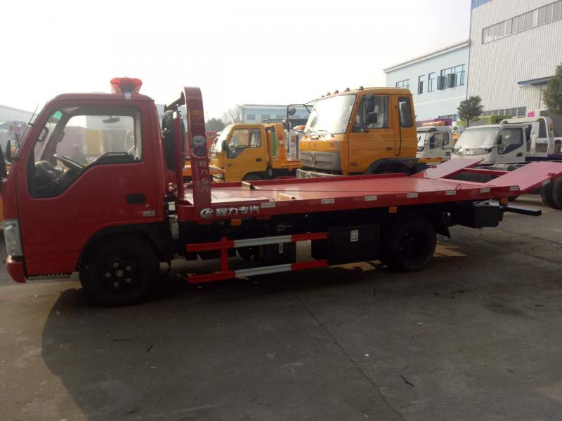 五十铃一拖二蓝牌清障车优点:采用先进成熟产品技术、生产工艺、全进口密封液压件,新型防滑板,平板底部加装加强型横梁固定,增强平板承载能力,并且平板板面采用一次成型模具冲压,耐强不变形。