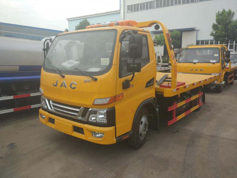 4吨上装,配4吨液压绞盘,21米钢丝绳,双侧联动操作,半落地式拖板,采用新型一次性成型孔冲压板或4个厚花纹板,拖板长4.2米,宽2.3米,尾板长1米,(尾板可选用液压翻转板或液压伸缩板),二节四边型后托臂,大托举2.5吨,配L型拖叉一对,拖叉套一套,辅助轮小车一对,绑带4条,黄色长排电子警灯喊话器一套,LED工作灯两个,随车工具一套;其它底盘公司标配;