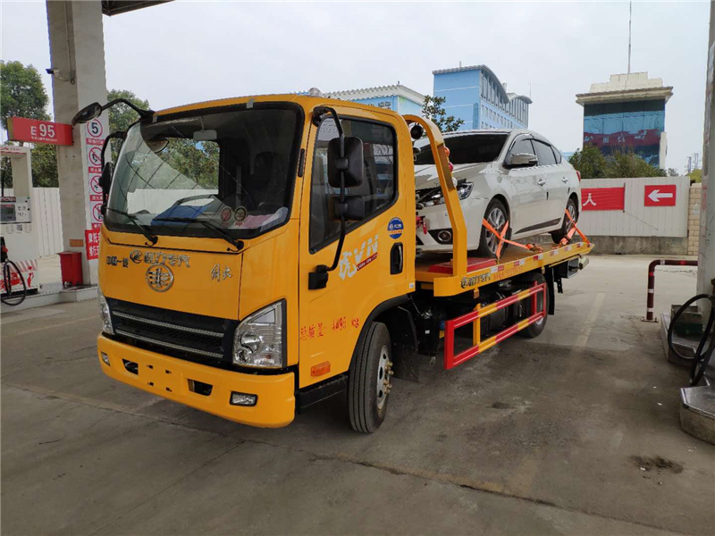 4吨上装,配4吨液压卷扬机一部,21米钢丝绳,双侧联动操作,半落地式拖板,采用新型一次性成型孔冲板或4个厚花纹板,拖板长5.2米,(平板长4.2米+1米液压尾板)尾板可选用液压翻转板或液压伸缩板,宽2.3米,二节四边型后托臂,大托举2.5吨,配L型拖叉一对,拖叉套一套,辅助轮小车一对,捆绑带4根,LED后工作灯两只,工具箱一个,备胎架一个,随车工具一套,可选装链条钩,洗手箱;