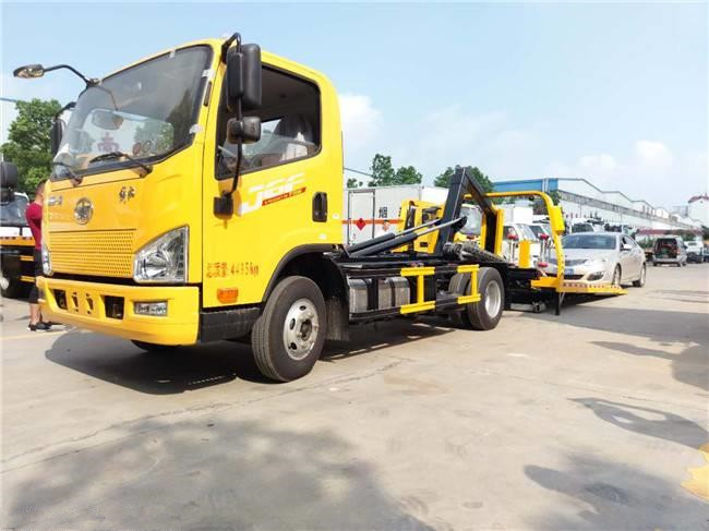 清障车根据作业装置的结构特点,清障车可分为托吊分离型、托吊联体型、平板背载型、平台升降型。托吊分离型即吊臂和托臂可单独工作,互不影响;托吊联体型即吊臂与托臂联结一体;平板背载型即通过牵引或吊举车辆至平板上进行背载运输;平台升降型即通过升降平台进行搬运传递或高空作业。