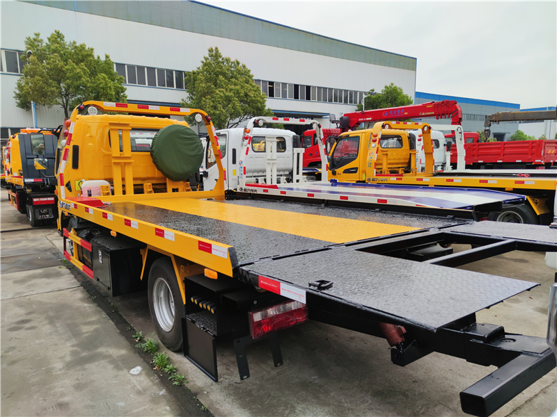 半落地式上装,配4吨液压卷扬机一部,21米钢丝绳,双侧联动操作,半落地式拖板,采用新型一次性成型孔冲板或4个厚花纹板,拖板长5.2米,(平板长4.2米+1米液压尾板)尾板可选用液压翻转板或液压伸缩板,宽2.3米,注:拖板也可做中间加活动板,总板长可达到5.6米,配二节四边型后托臂,配L型拖叉一对,拖叉套一套,辅助轮小车一对,捆绑带4根,LED后工作灯两只,工具箱一个,备胎架一个,随车工具一套,可选装链条钩,洗手箱;